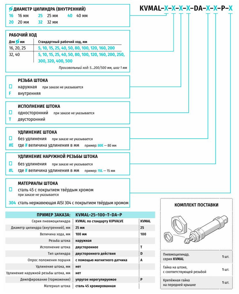Круглые пневмоцилиндры Kipvalve KVMAL ⌀16...40 мм - в стандартном алюминиевом корпусе и разборном исполнении
