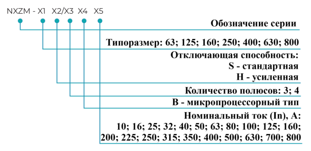 | Тип | NXZM-63 | NXZM-125 | NXZM-160 | NXZM-250 | NXZM-400 | NXZM-630 | NXZM-800 |
