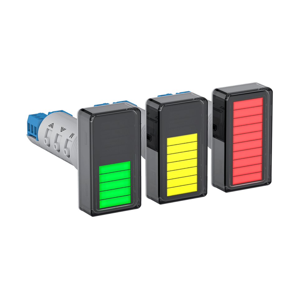 Диаграммный индикатор ИТП-15 качественно отображает параметры техпроцесса на 10-сегментном барграфе с цветовой индикацией (зеленый, желтый, красный).