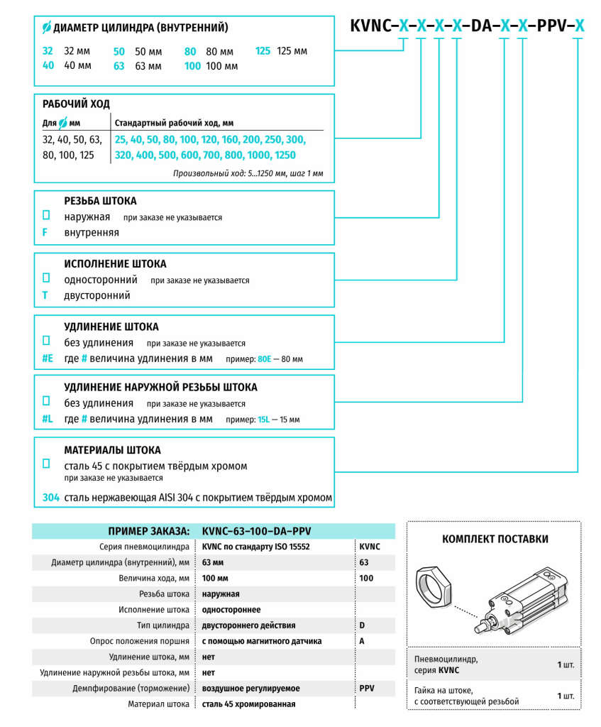 Классические профильные пневмоцилиндры Kipvalve KVNC ⌀32...125 мм в квадратном корпусе, по стандарту ISO 15552