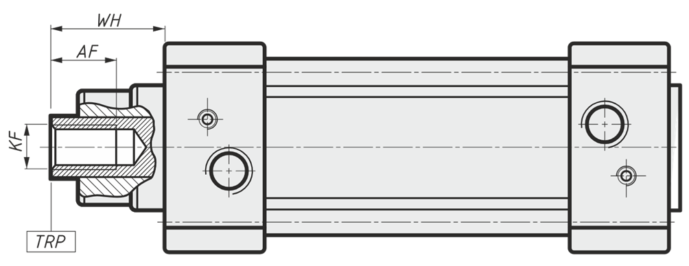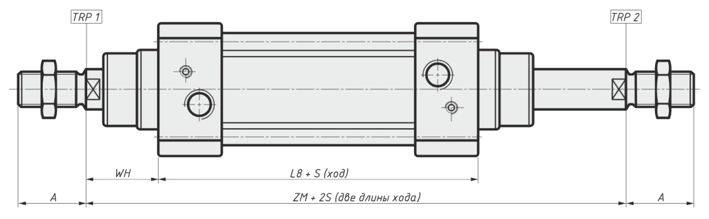 | A | Длина резьбы штока | RT | Внутренняя резьба для крепления монтажных элементов передней и задней крышек |