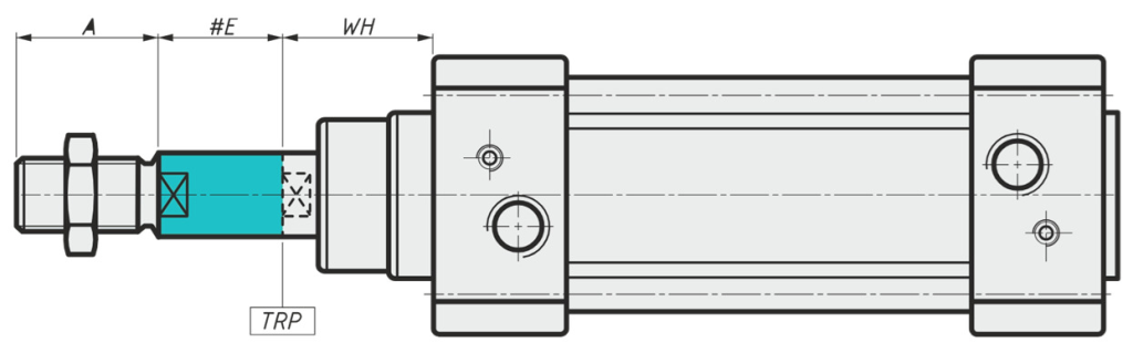 | Описание размеров | Размер от TRP (теоретической точки отсчёта) до плоскости передней крышки | Внутренняя резьба штока | Глубина внутренней резьбы штока | Длина резьбы штока | Величина удлинения штока | Величина удлинения наружных резьб штока |