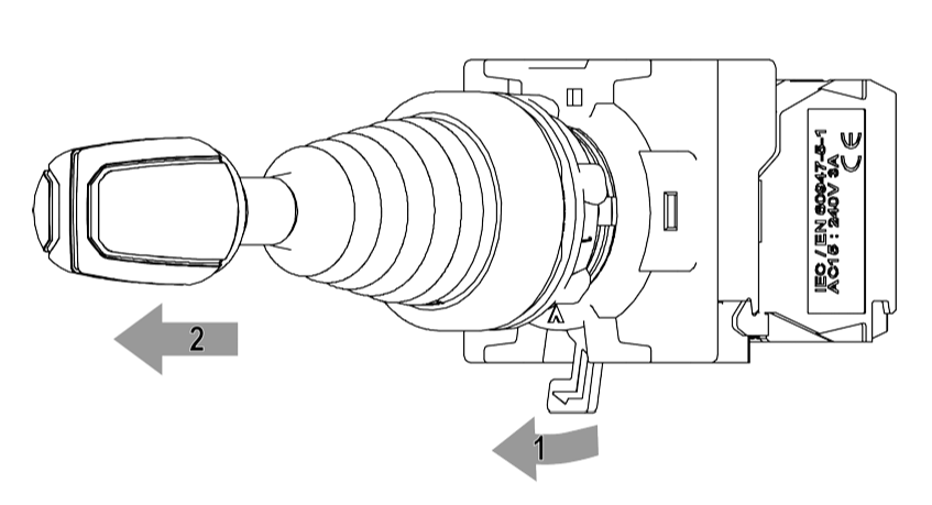 1. Отсоединить джойстик от основания. Для этого потянуть за рычажок (см. рисунок ниже, стрелка 1).