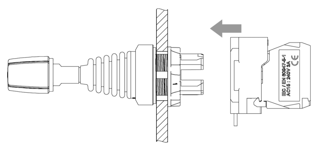 3. Установить джойстик в щит, закрутив гайку с обратной стороны щита.
