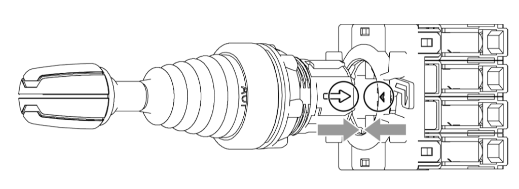 Для правильного соединения следует совместить метки на корпусах джойстика и основания.