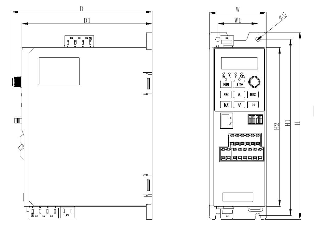 | Модель | W (мм) | W1 (мм) | H (мм) | H1 (мм) | H2 (мм) | D (мм) | D1 (мм) | ⌀D (мм) | Тип |