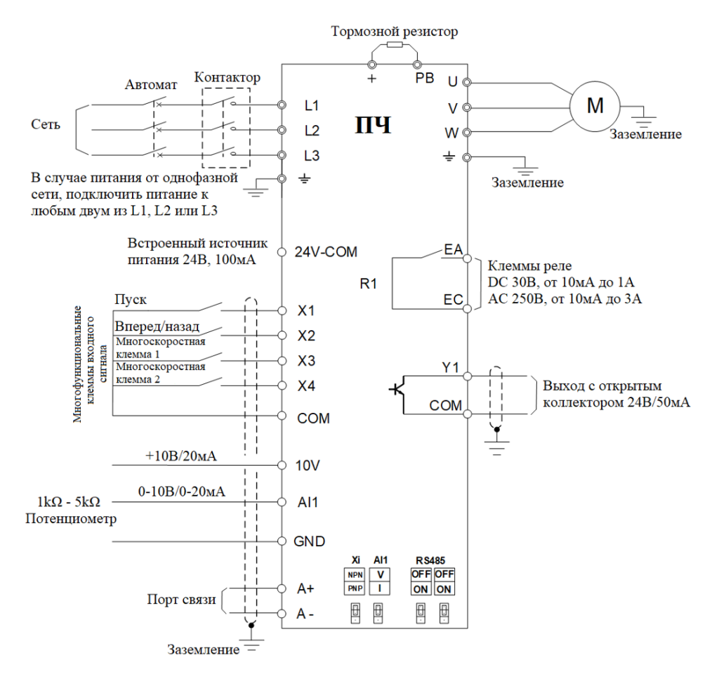 | Аналоговый вход | AI1: 0-10 В или 4-20 мА (выбор), F02.62 |