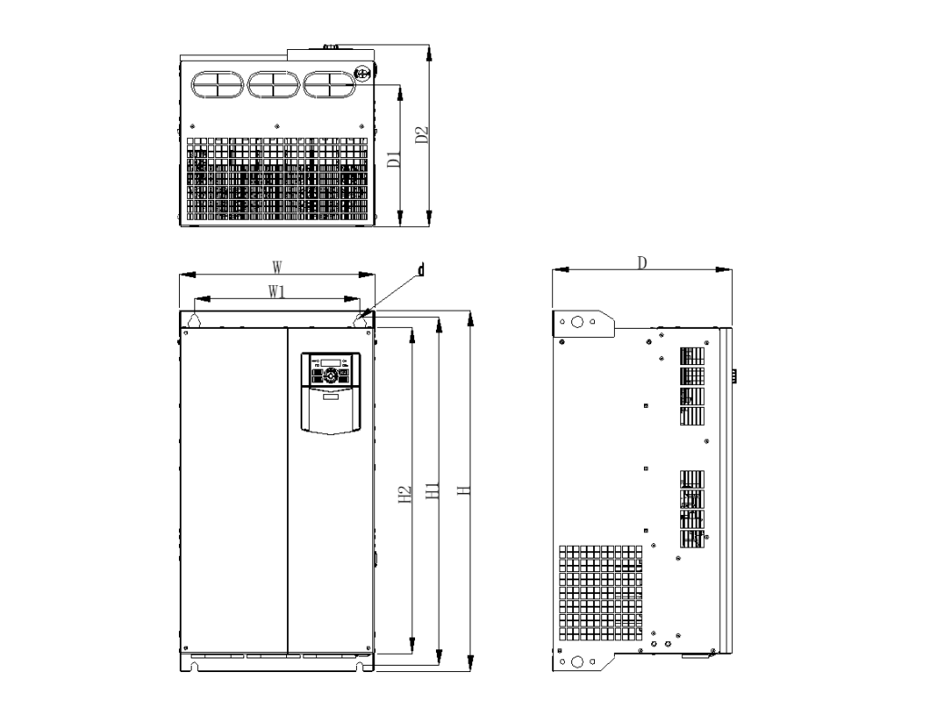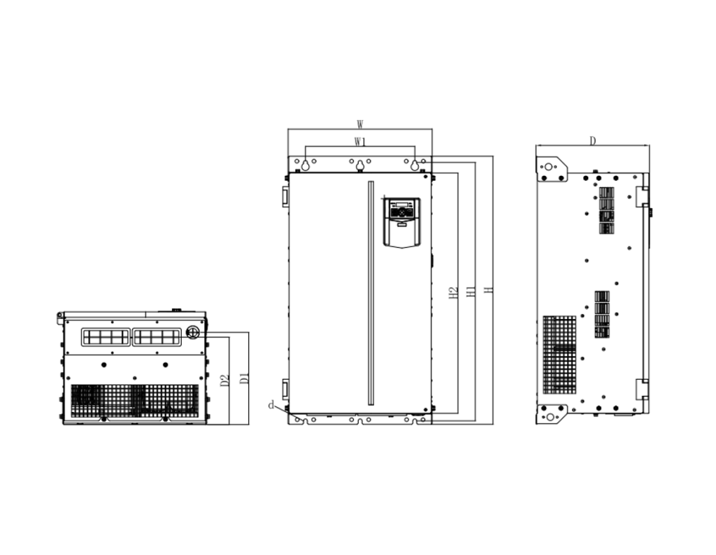 | Наименование | W | W1 | H | H1 | H2 | D | D1 | D2 | ⌀d |