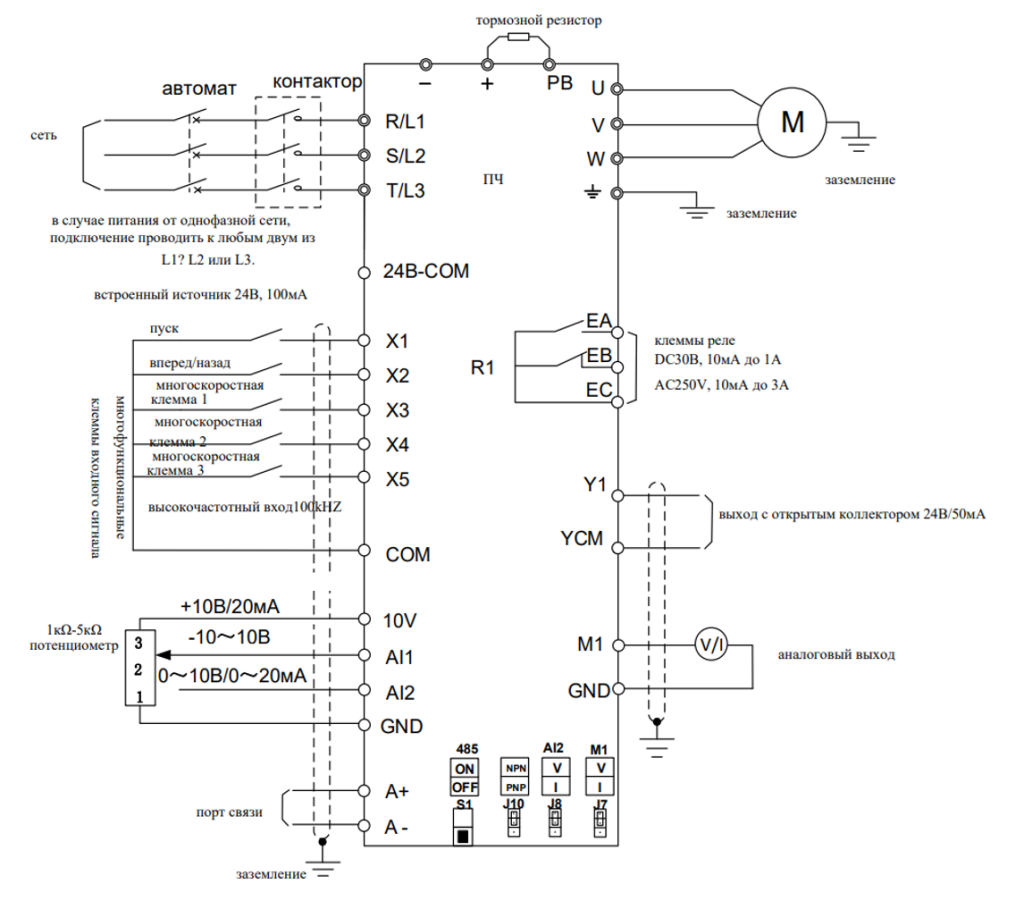 | Аналоговый выход | Многофункциональный аналоговый выход M1: 0-10В/0-20мA |