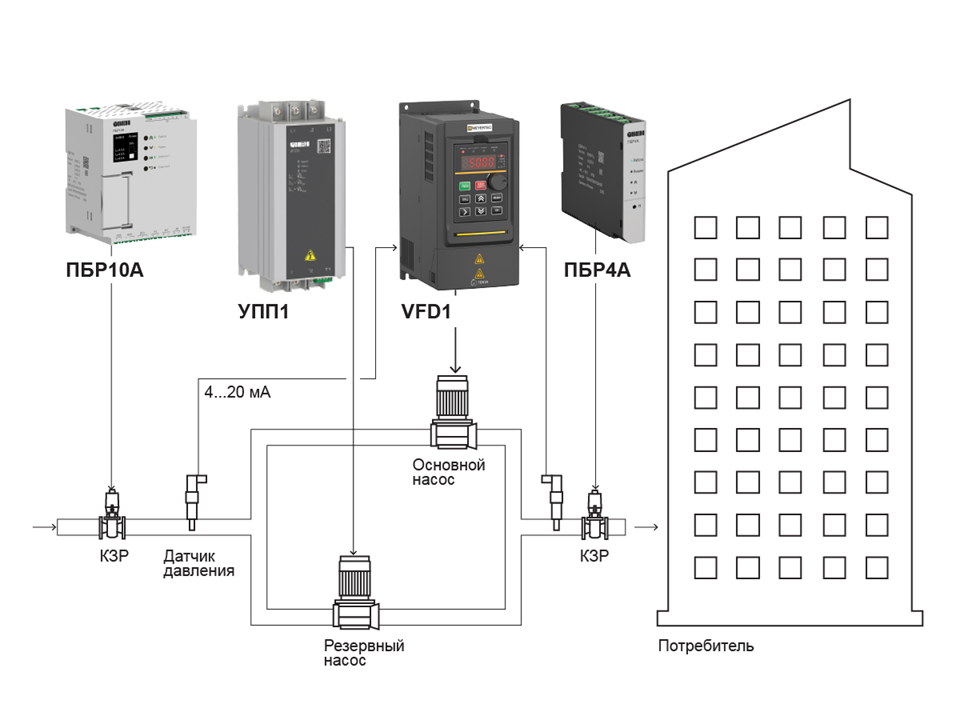 Управление насосами подачи воды в здание |