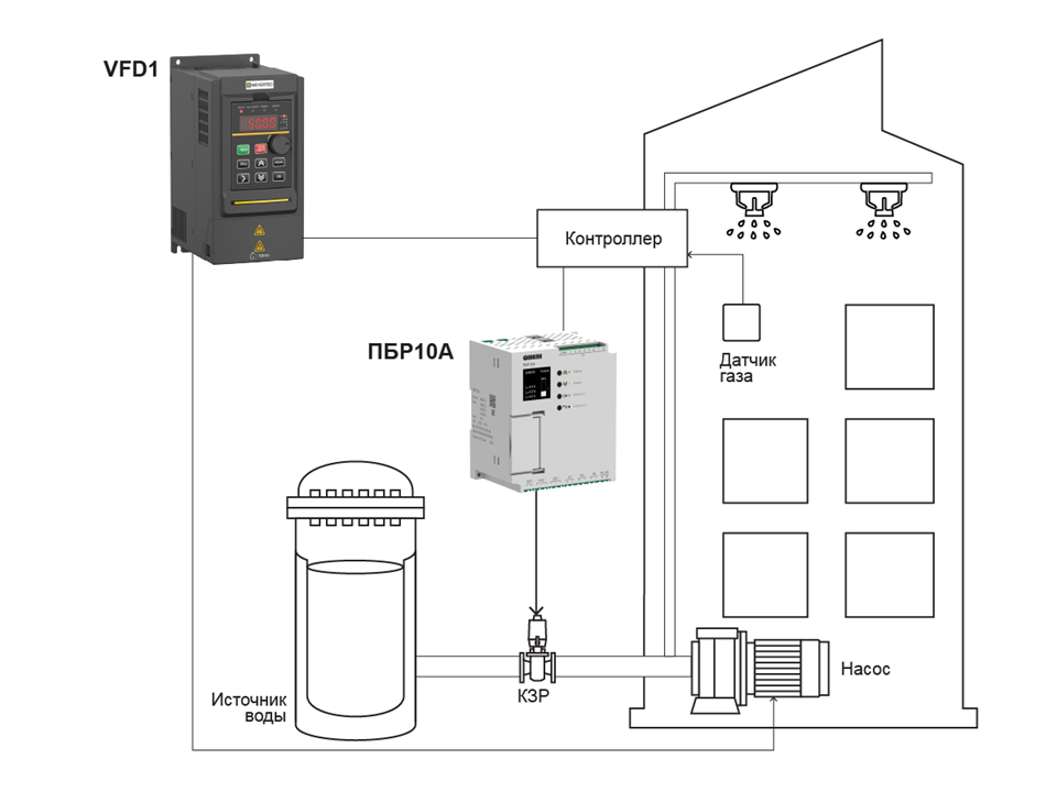Управление насосом в системах пожаротушения |