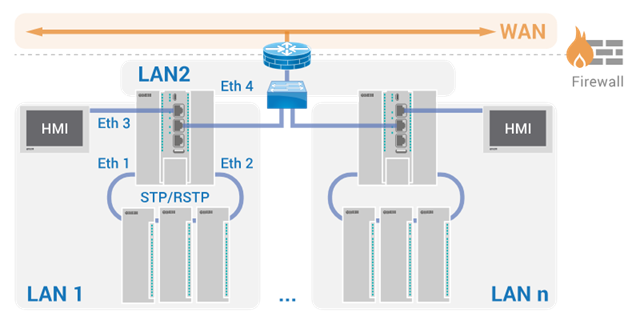 Для увеличения входных и выходных сигналов рекомендуется использовать линейку модулей Мх210 с интерфейсом Ethernet. Модули расширения совместно с контроллером поддерживают кольцевую топологию, обеспечивая устойчивость системы к перегрузкам и уверенную работу с большим потоком данных.