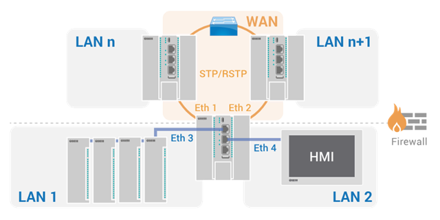 Двойной ввод питания для резервирования по питанию. Поддержка кольцевой топологии Ethernet при подключении модулей Мх210 (STP/RSTP). Встроенный Firewall для безопасности передачи данных.
