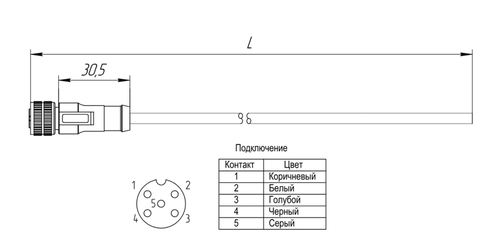 - Кабельная сборка с разъёмом М12 - это готовая формованная сборка, обеспечивающая надёжную степень защиты IP68 в месте соединения разъёма и кабеля, что позволяет использовать их в сложных климатических и промышленных условиях. Материал кабеля полиуретан (PUR) рассчитан на высокие температуры эксплуатации от -40 до +105 °С, а экран защищает от электромагнитных помех. Длина кабеля: 2, 5, 10 или 15 метров.