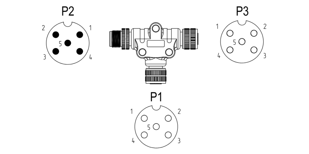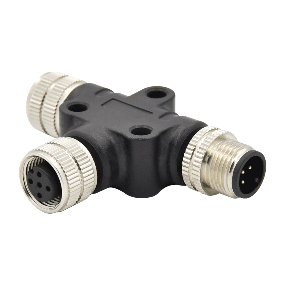 - Разветвитель М12 - позволяет объединять несколько сигналов в один, имеет Т-образную форму.
