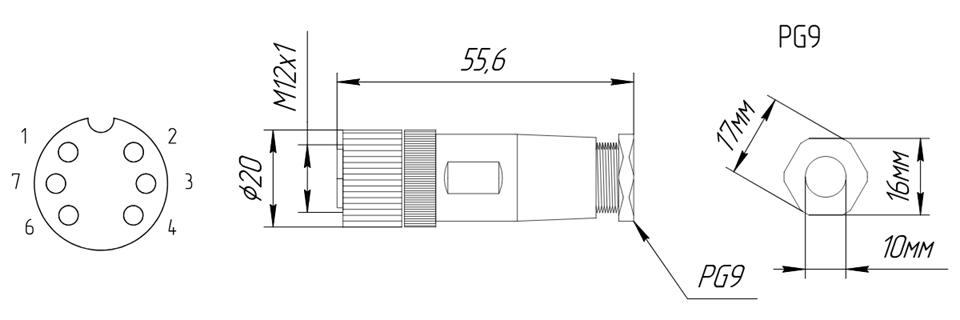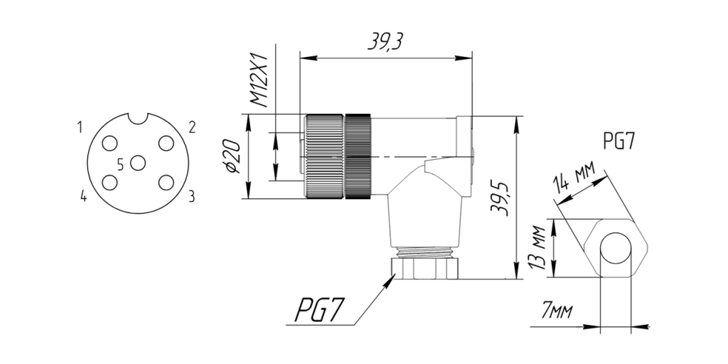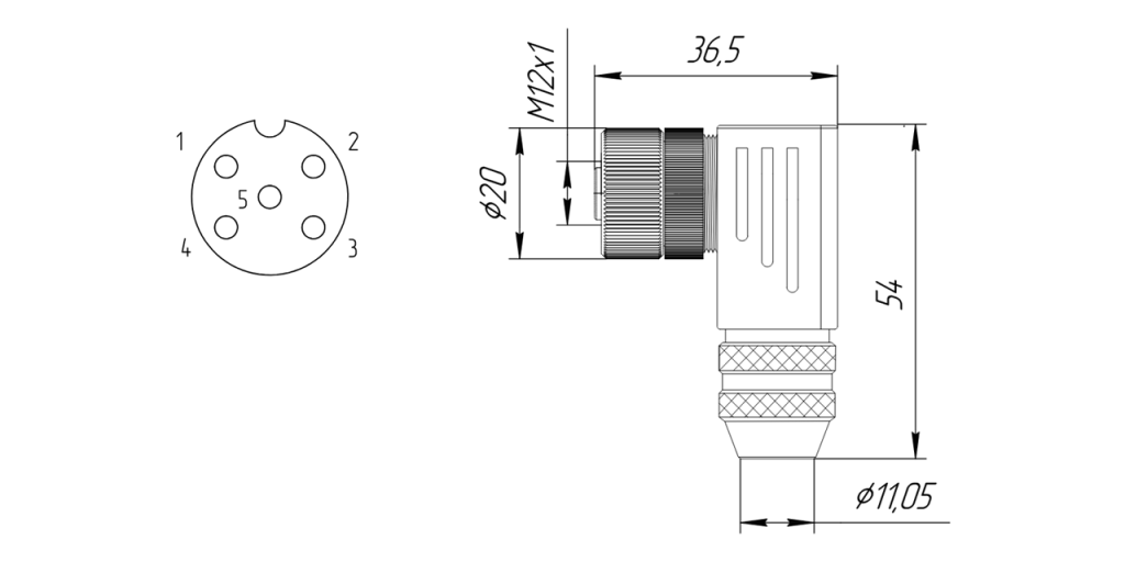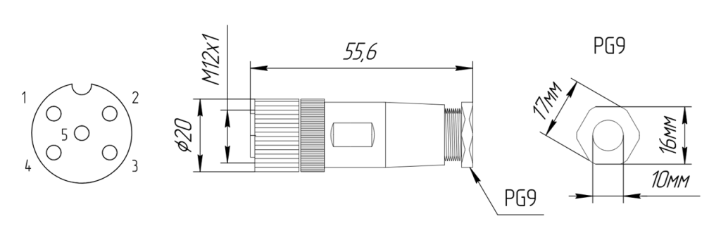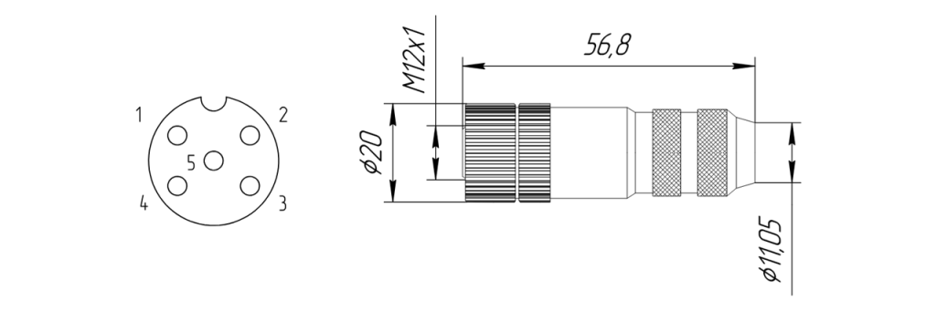 Разъём с количеством контактов 5 pin универсальный и подходит для штекеров М12 с количеством пинов 5, 4, 3 или 2.